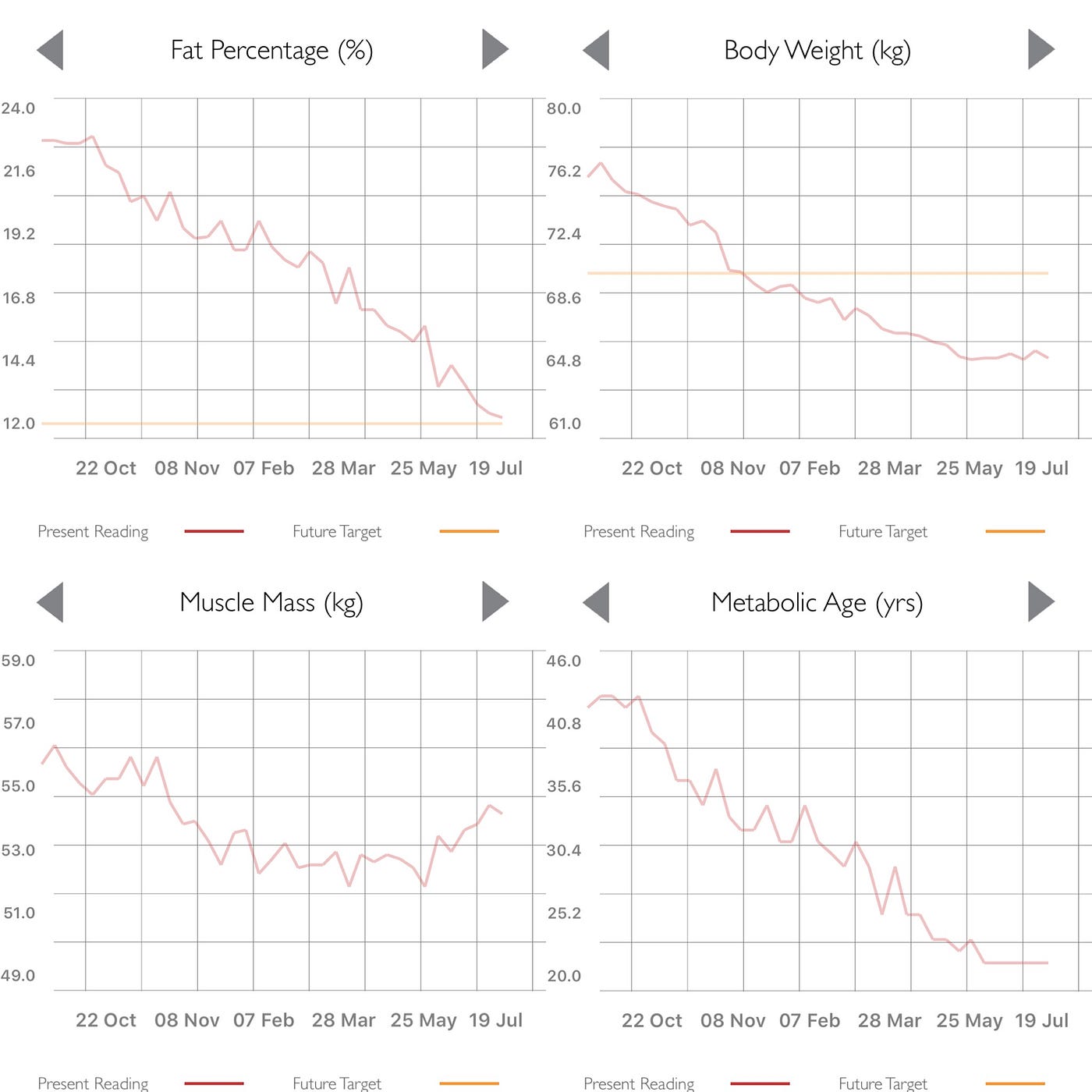 - Metabolic age from 37 to 29 (I'm 8 years younger within 3 months!)